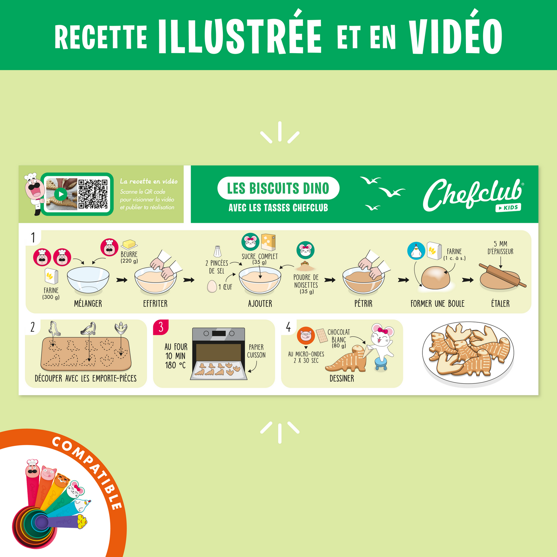 • Une e-recette illustrée (scaner le QR code sur le packaging pour la retrouver)