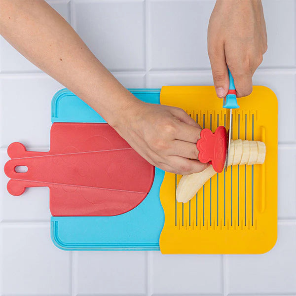 Préparez vos repas avec facilité et plaisir grâce à ce trio indispensable ! Le couteau pensé pour les petites mains coupe fruits, légumes et viandes, L'éplucheur ergonomique facilite le travail des petits cet des gros fruits et légumes. La planche à découper robuste permet de protéger votre plan de travail !