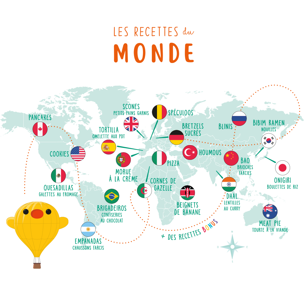 Chaque destination leur fait découvrir une spécialité culinaire unique, adaptée aux enfants et facile à réaliser, pour apprendre à cuisiner tout en explorant les saveurs du monde depuis la maison.