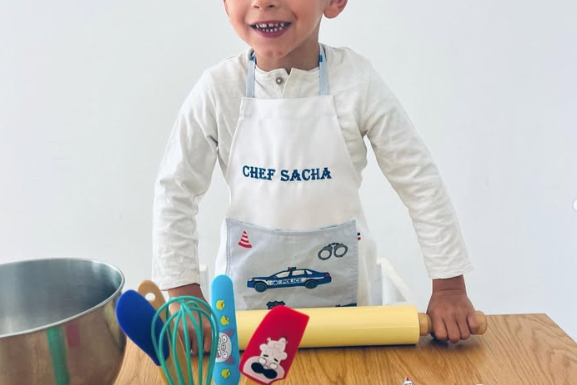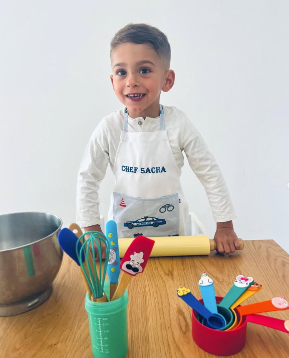 ⚪️ Avec son tablier en coton, votre petit chef sera prêt à affronter toutes les péripéties en cuisine, même les éclaboussures de chocolat fondu !
