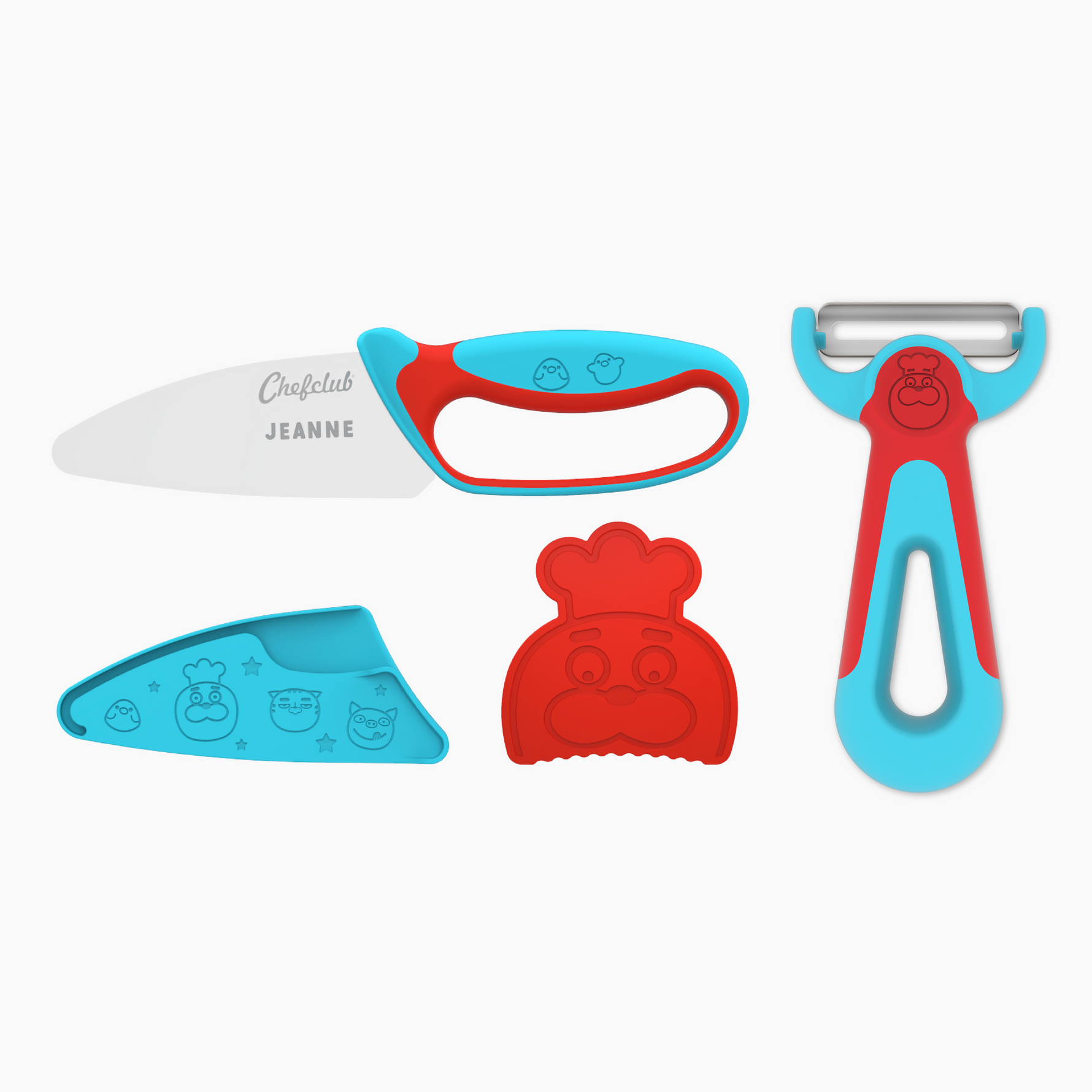 Mon Kit découpe personnalisé Bleu & Rouge : Couteau et éplucheur Chefclub Kids